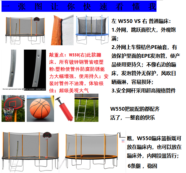 14FT Powder-coated Advanced Trampoline with Basketball Hoop Inflator and Ladder(